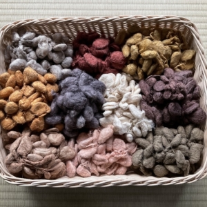 パレスチナ自治区(ヨルダン川西岸地区・ガザ地区)の難民・農民女性らと共に手刺しのパレスチナ刺繍の帯を作っています。歴史的パレスチナは染織が盛んな地域で、女性たちは刺繍たっぷりの民族衣装を手作りしていました。帯の文様はパレスチナの伝統柄で、「ビーズと糸杉」「アイライナー容器」など、とてもユニーク。戦争があろうとも、皆で力をあわせて帯づくりを続けています。