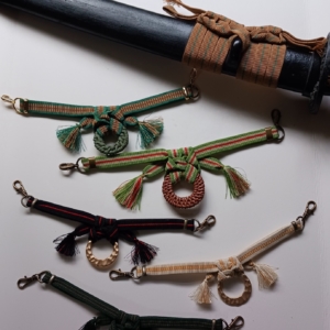 今回は問い合わせのあった日本で唯一技術保全している草木染手織り真田紐の帯締め、袋織真田紐にお香を詰めたストラップを新作としてお持ちします。