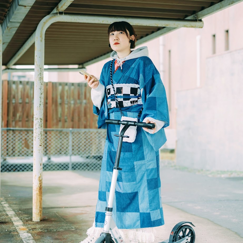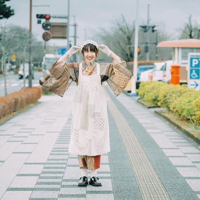 ひみつのきものは、地域で集めた古着をパッチワーク、裂き編みなどのさまざまな技術で素材にアップサイクルして作っています。