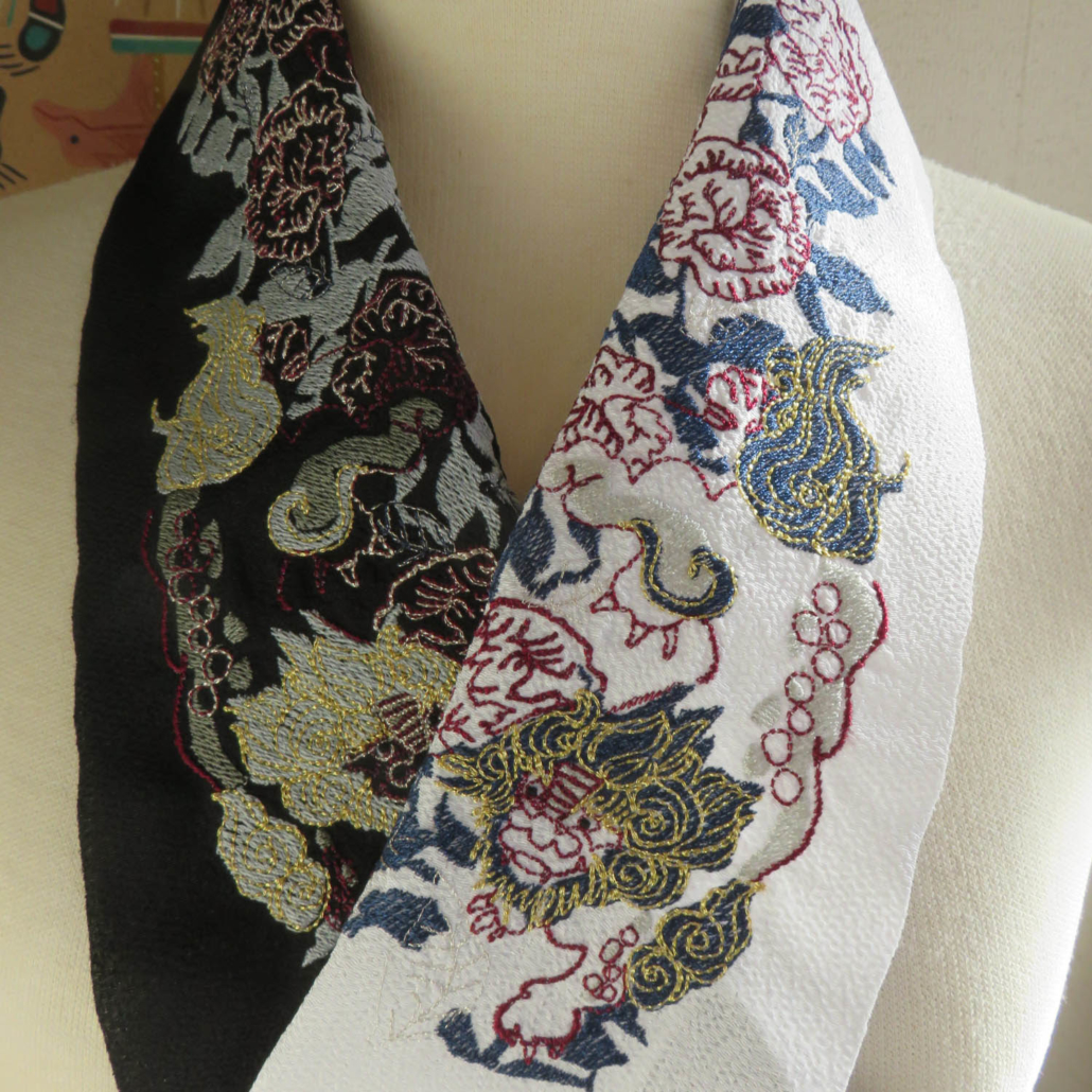 綺麗で可愛い刺繍半襟やかっこいいファーベルト、バタフライブローチなど夢のある商品を作る富士商会です。