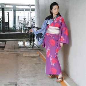 「江戸 meets ROCK‼︎」をテーマに、江戸の粋や洒落、あるときはお伽噺や物語の世界を織り込みつつ、ストリートファッションの要素を取り入れたデザインを着物に集約させています。東京・吉原にあるアトリエで、企画からデザイン、時には製作も行っております。今回のキモノショーでは、新作の注染ゆかたを中心に、透け感を楽しむ羽織、自由な結び方のギラヘコなど、いち早く春夏アイテムをご覧いただきます。