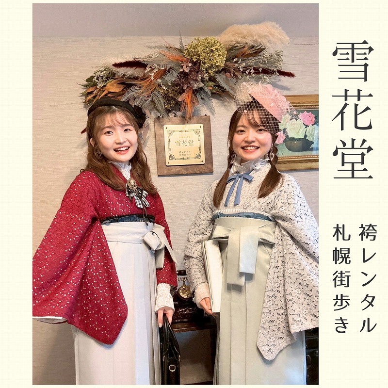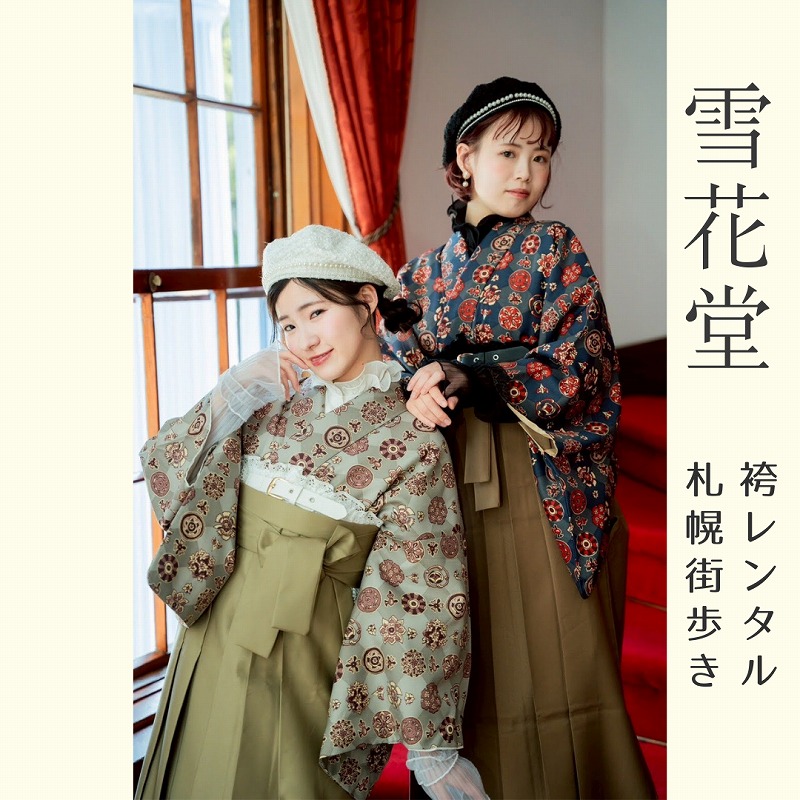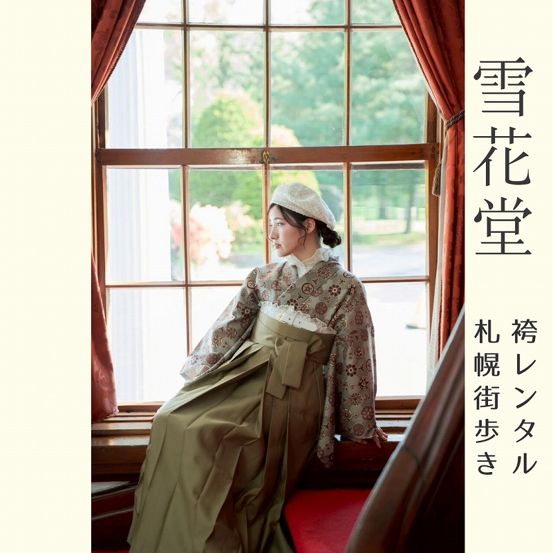 雪花堂はクラシックかつ、カジュアルな袴コーデスタイルで、札幌の歴史的建造物やカフェへお出かけいただき、レトロな世界への「タイムスリップ体験」ができる袴専門の観光きものレンタルサロンです。あなただけのオリジナル袴コーデで「札幌のまち歩きをより魅力的に楽しむ」新しい観光スタイルを提供。アンティーク風インテリアで飾られたサロンでの撮影も映え旅の思い出に…♪